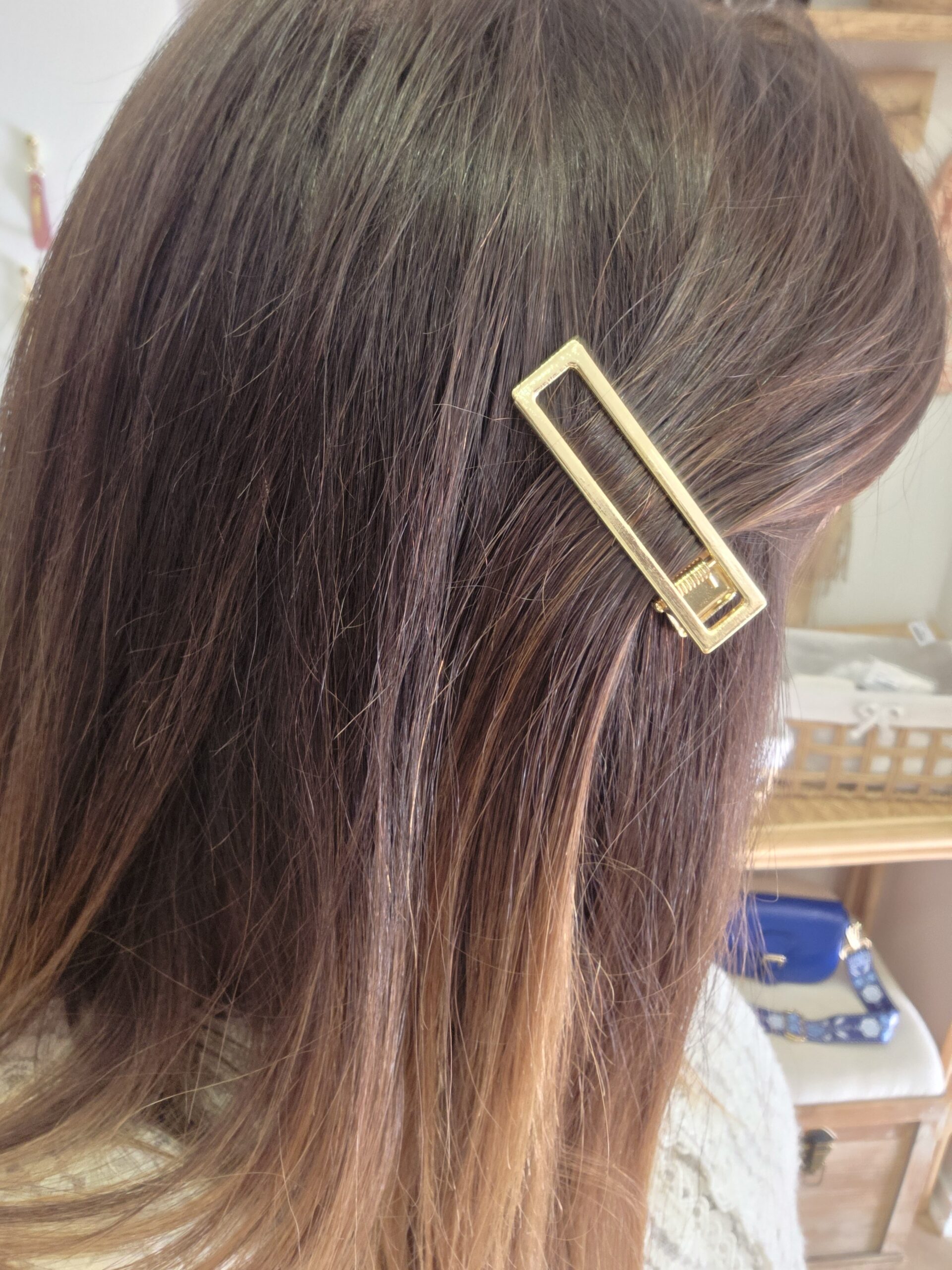 La barrette pince rectangulaire en laiton est l’accessoire parfait pour apporter une note chic et lumineuse à vos looks. Sa forme rectangulaire épurée en fait un bijou de cheveux à la fois discret et raffiné.
