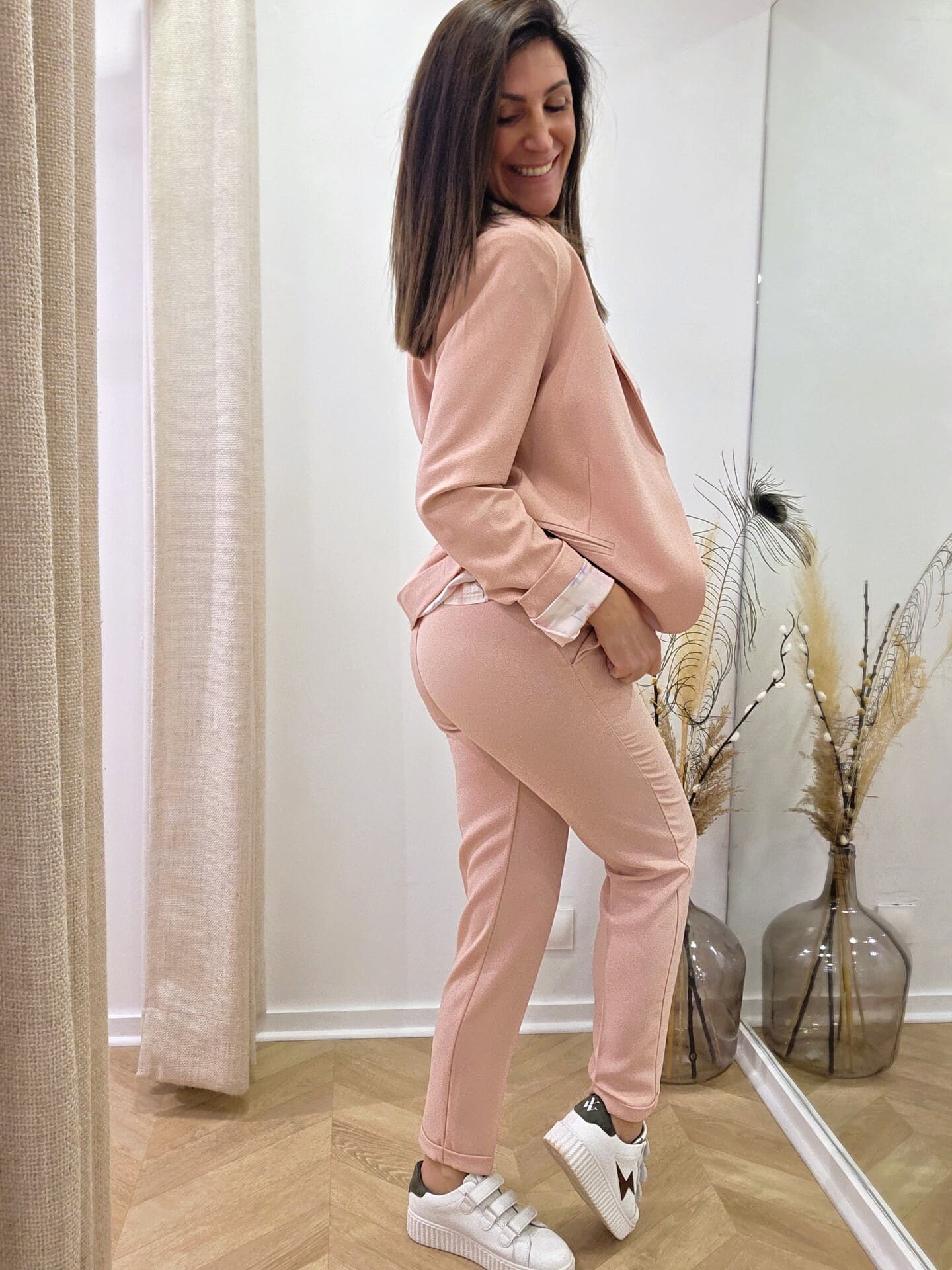 Sa doublure en polyester, assortie à la chemise CHIARA, apporte une finition soignée et un vrai détail mode. Il complète parfaitement l’ensemble avec le pantalon LUIGI pour un look chic et harmonieux.