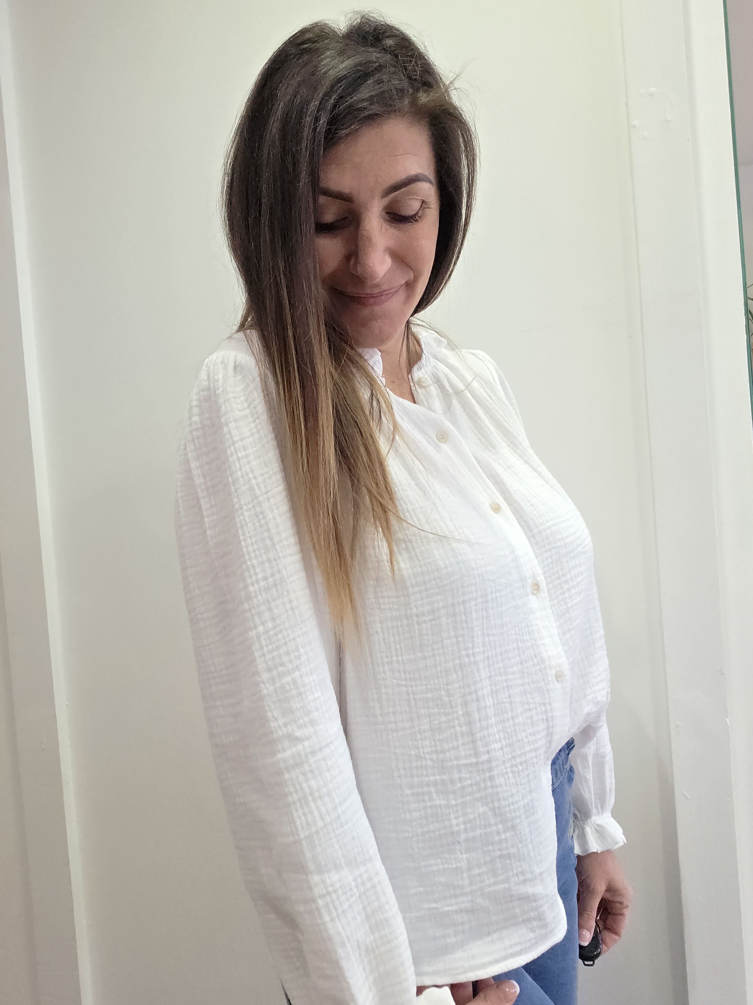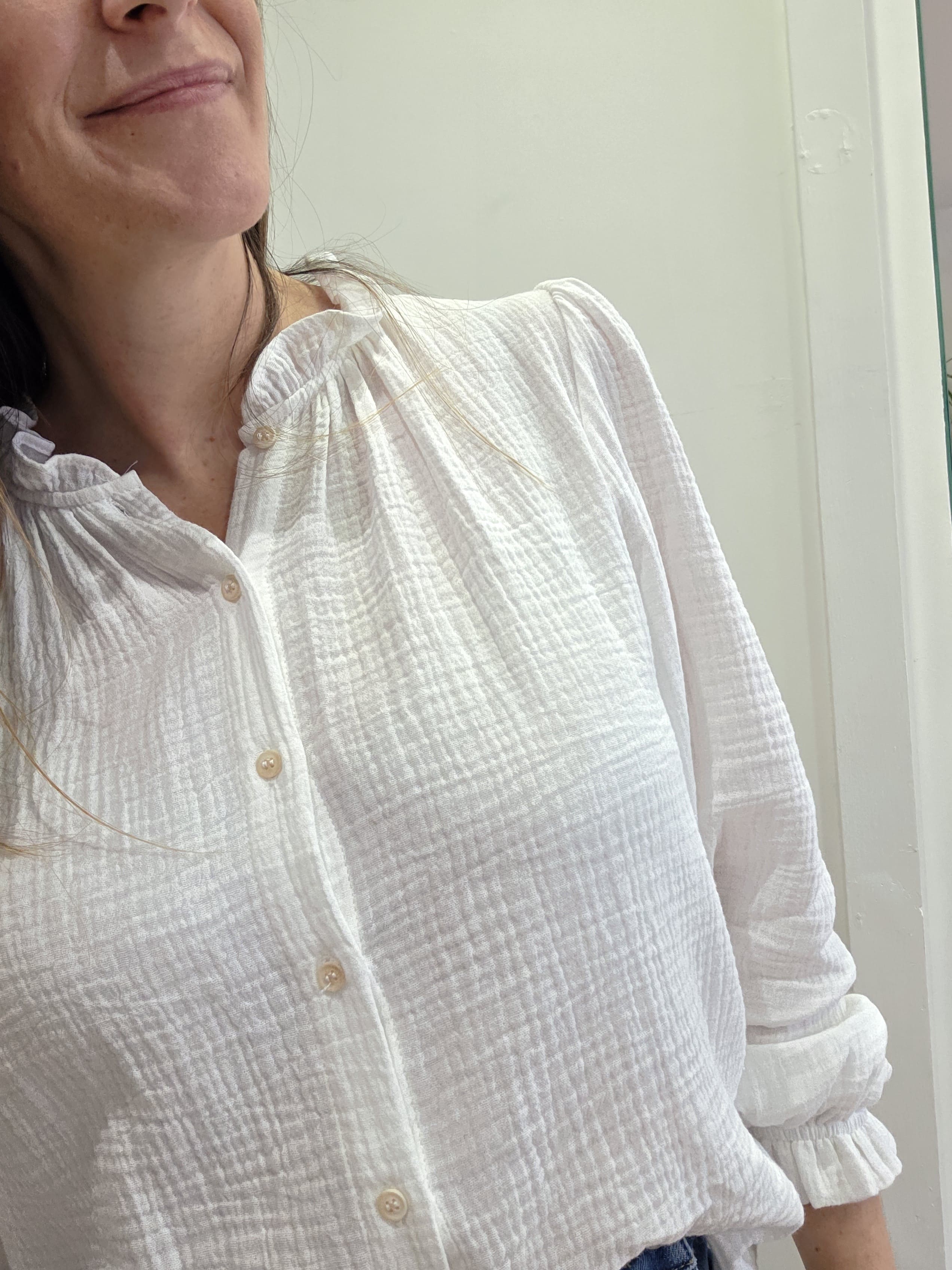 La chemise gaze de coton femme Fantine est une pièce douce, naturelle et facile à porter au quotidien.