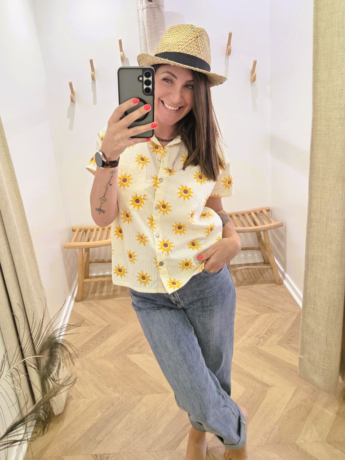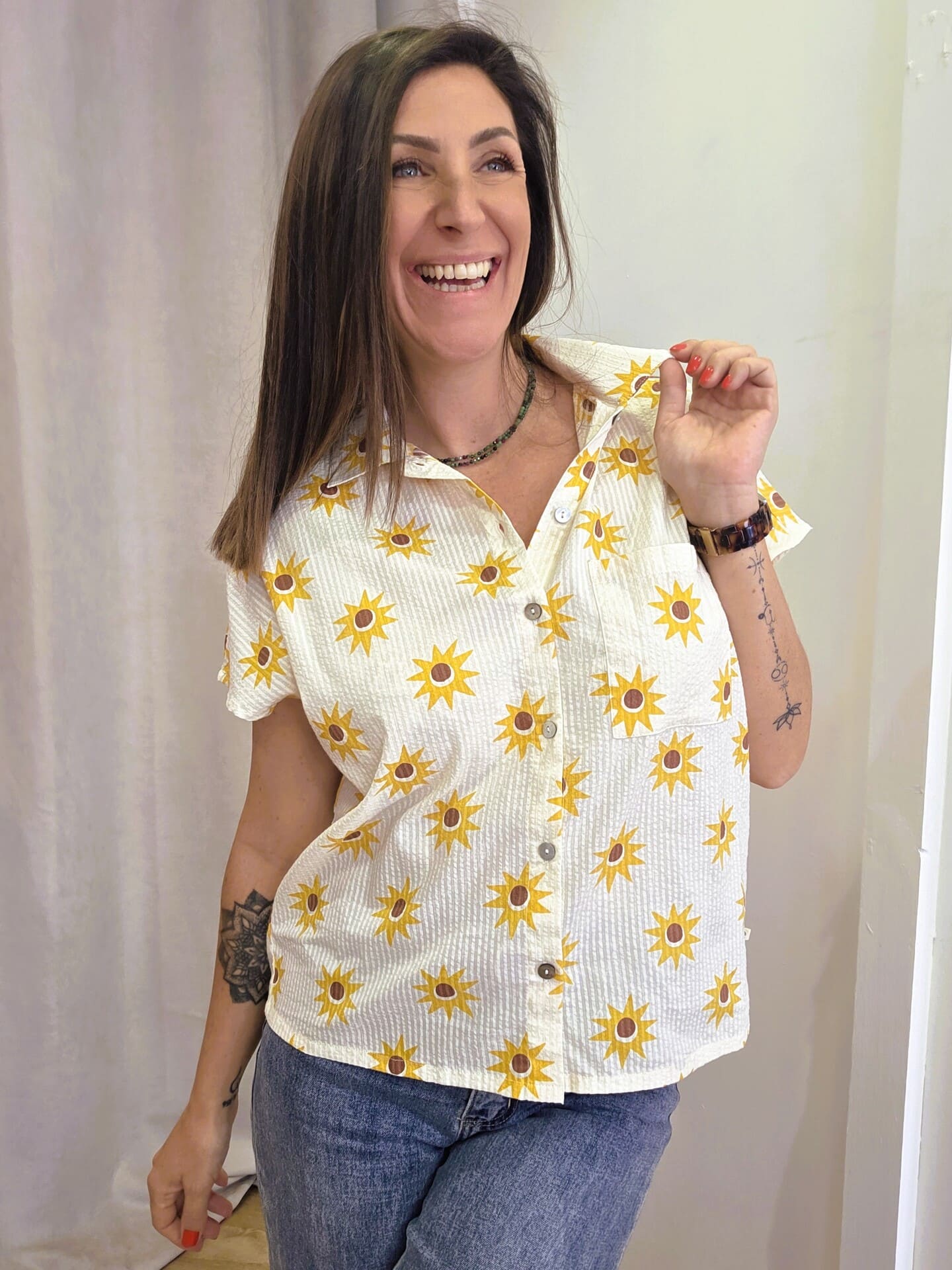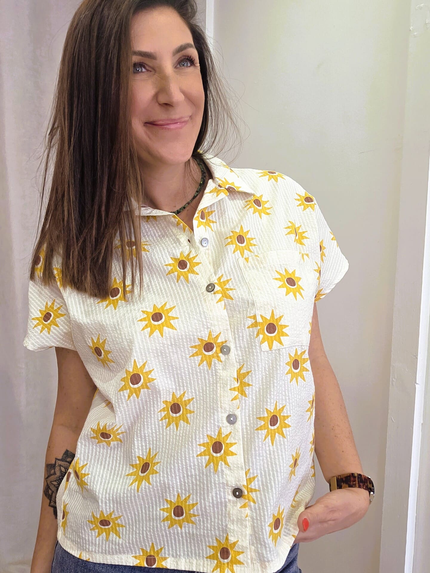 Facile à associer, elle se porte aussi bien rentrée dans un jean pour un look décontracté que laissée fluide pour un style plus naturel. Son imprimé apporte une touche de lumière et de bonne humeur à vos tenues, idéale pour la saison.