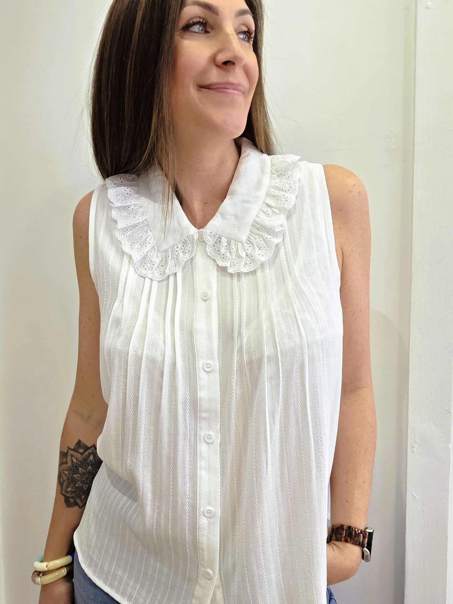 Le chemisier Claudine blanc est une pièce douce et féminine, parfaite à porter toute l’année.