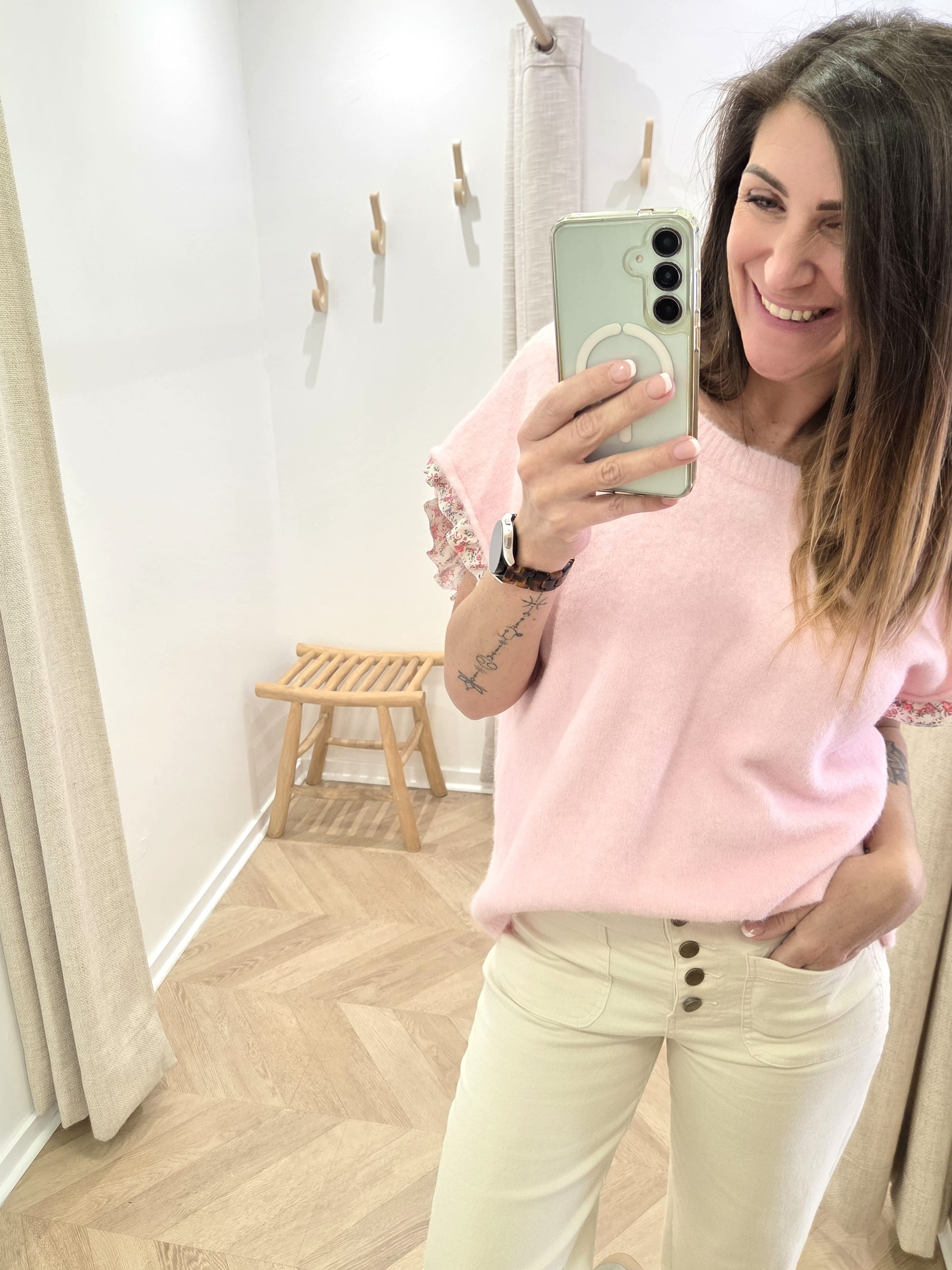 Sa teinte rose pâle illumine le teint et s’associe facilement aux tons clairs comme aux pièces plus soutenues.