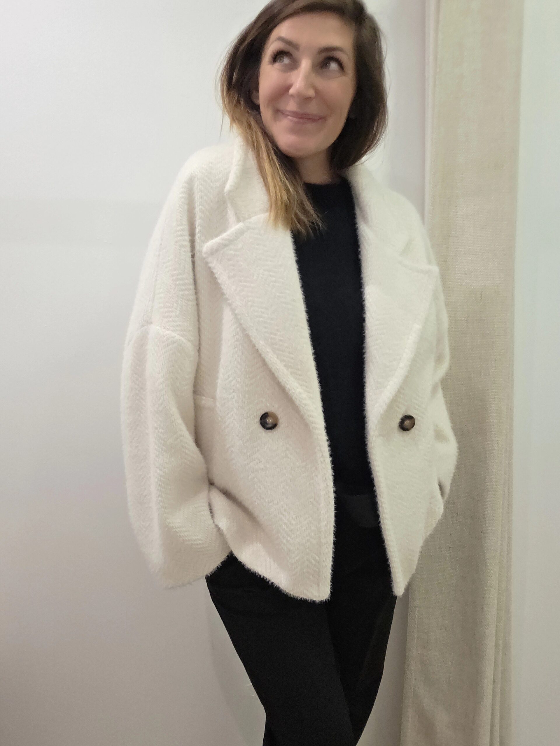 Le manteau Mattia a été pensé dans le sud de la France et fabriqué en Italie, associant créativité et savoir-faire. Sa matière douce au tissage chevronné discret lui donne beaucoup de caractère, tandis que sa coupe légèrement oversize apporte confort et allure.