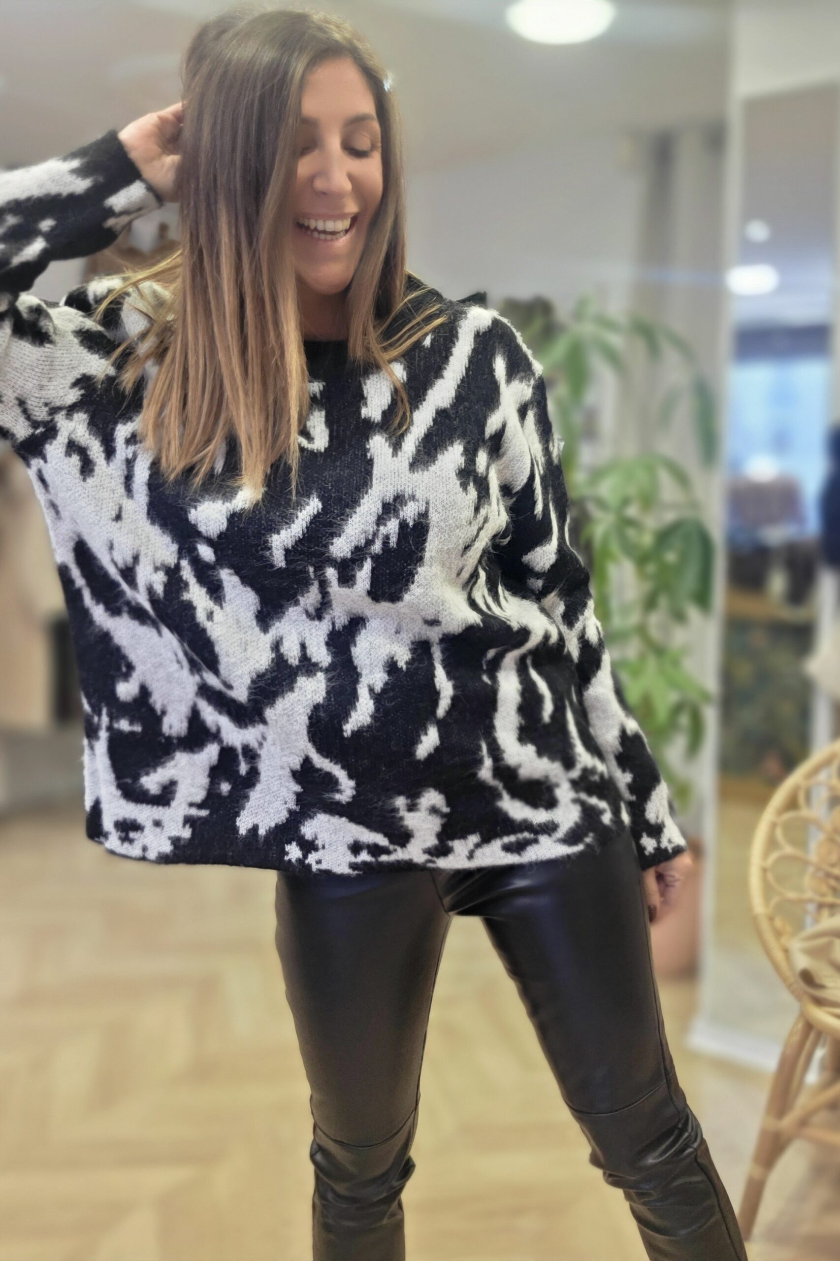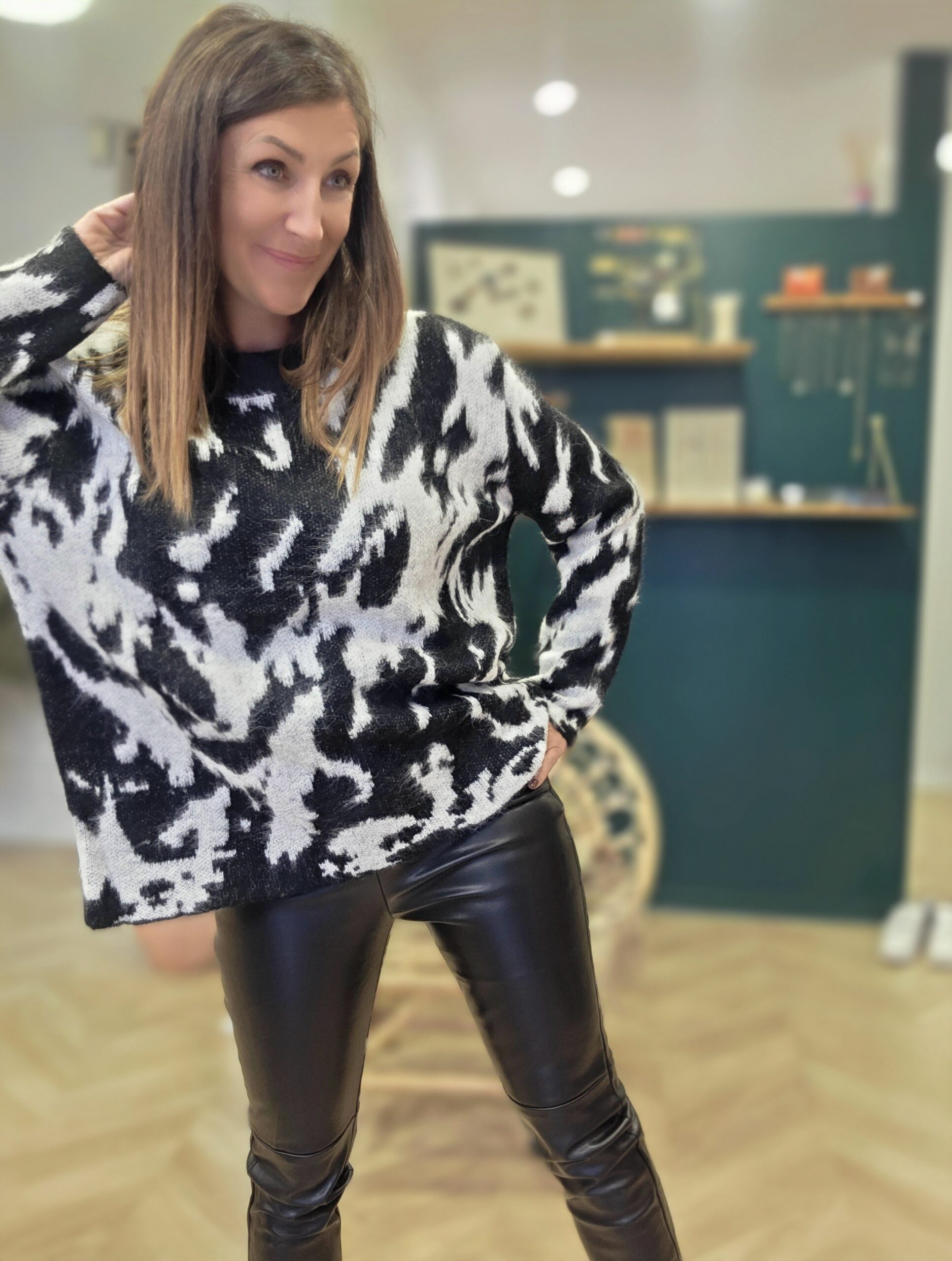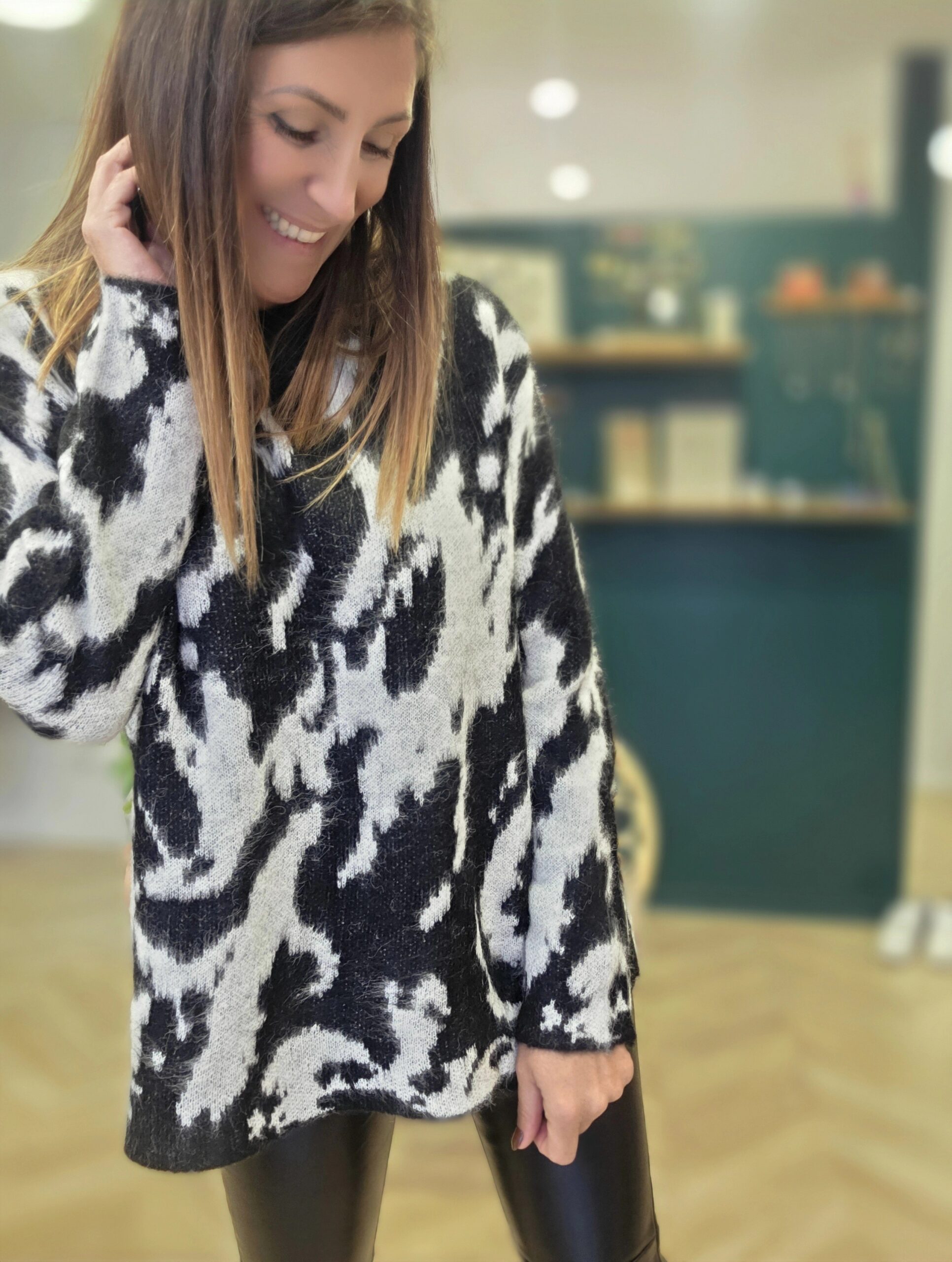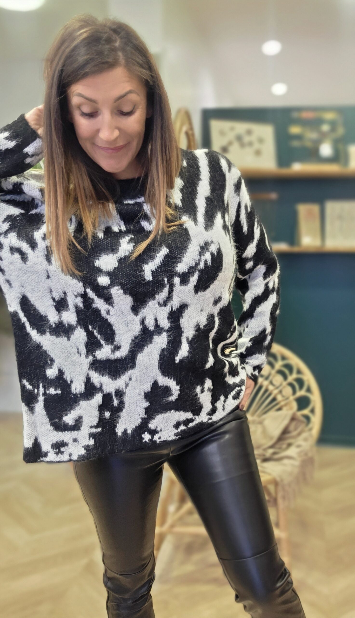 Le pull Graciela, c’est le parfait équilibre entre confort et style. Son motif noir et blanc apporte une vraie touche graphique tout en restant facile à porter au quotidien. Sa maille est douce, souple, agréable sur la peau et parfaite pour les journées fraîches.