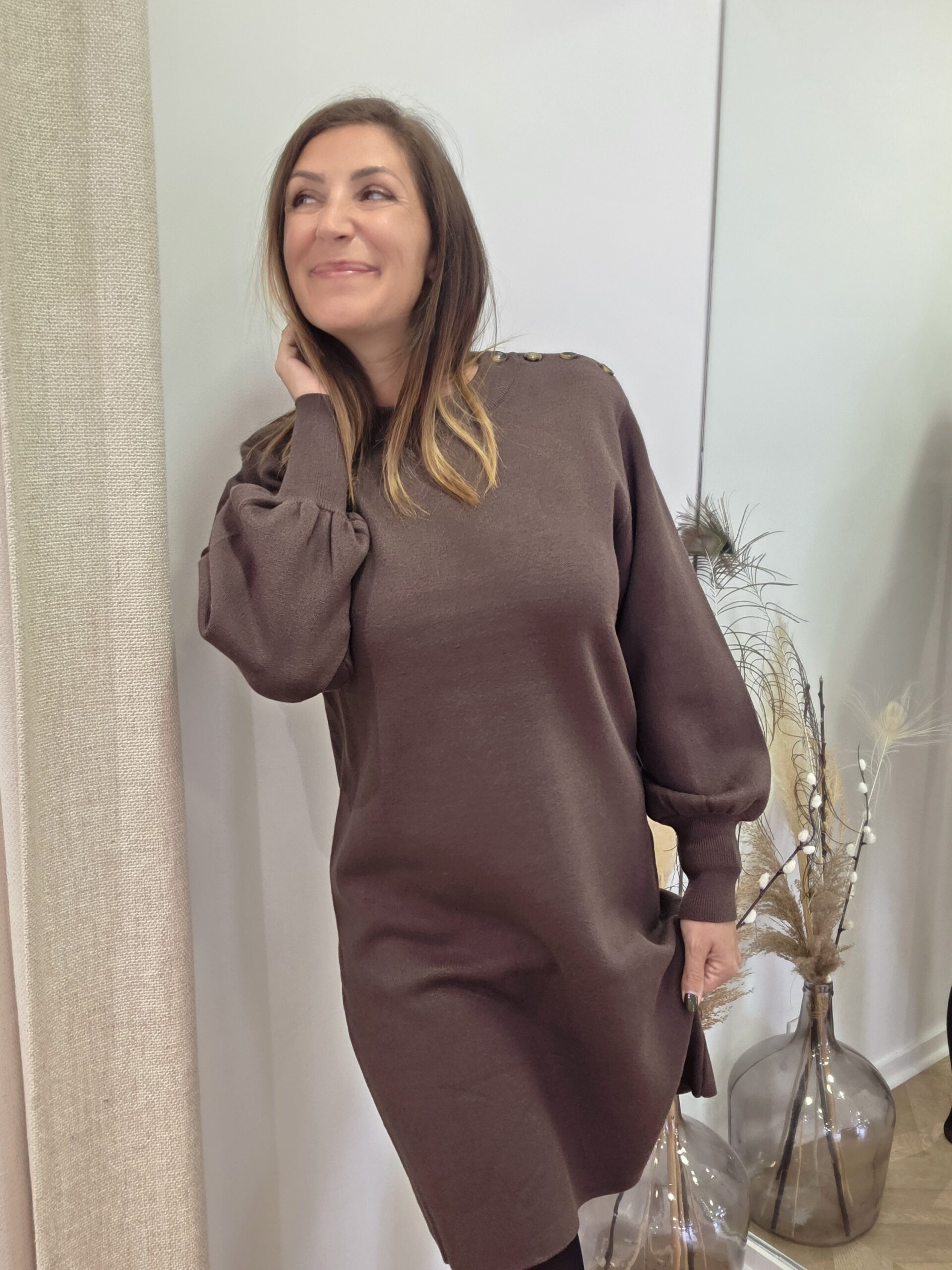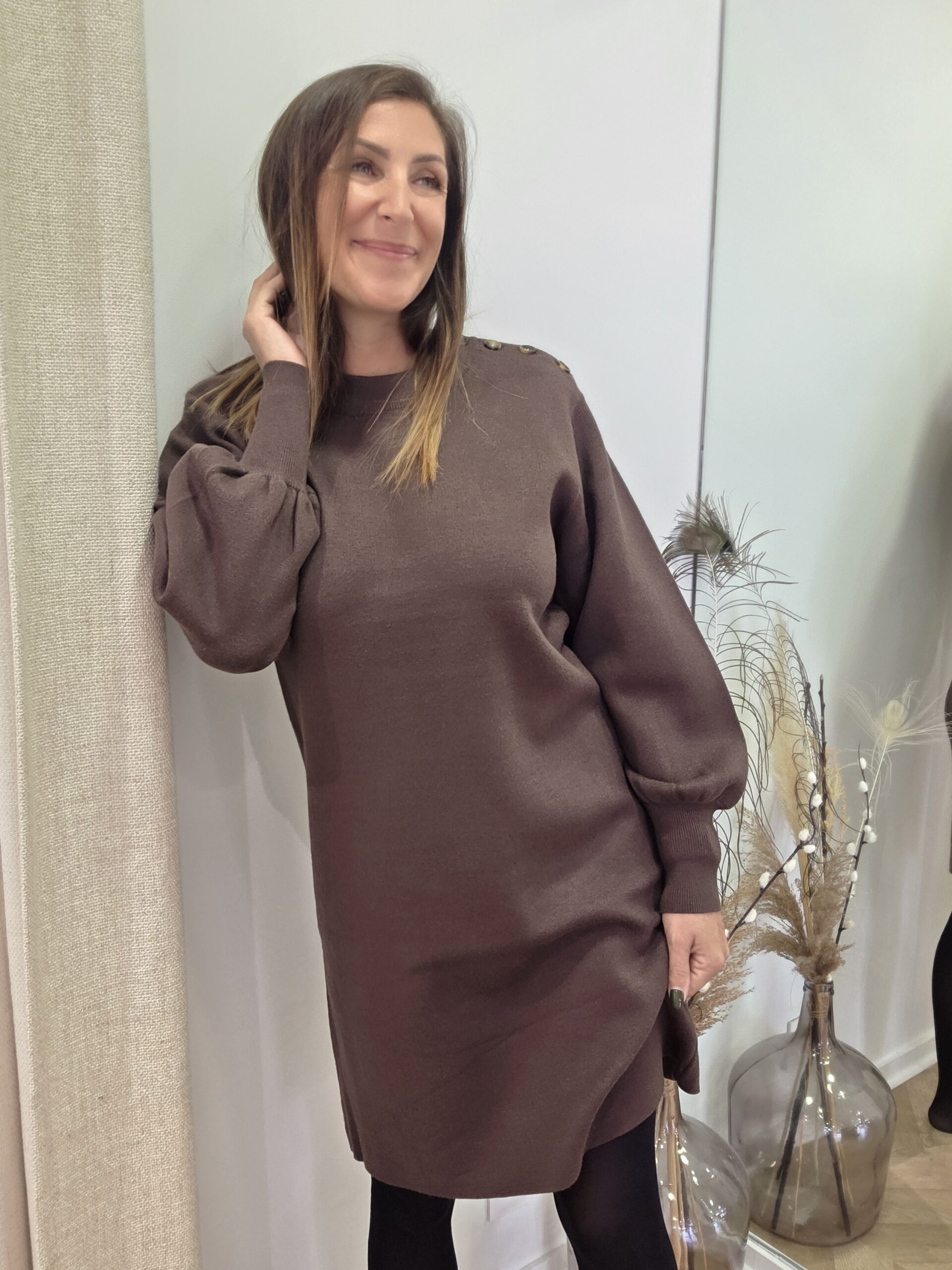 La robe Frida séduit par sa coupe simple et féminine, sublimée par de jolis détails. Sa maille fine et douce la rend très agréable à porter, tout en gardant une belle tenue. On aime particulièrement ses manches légèrement bouffantes et ses boutons sur l’épaule qui apportent une touche chic et raffinée.