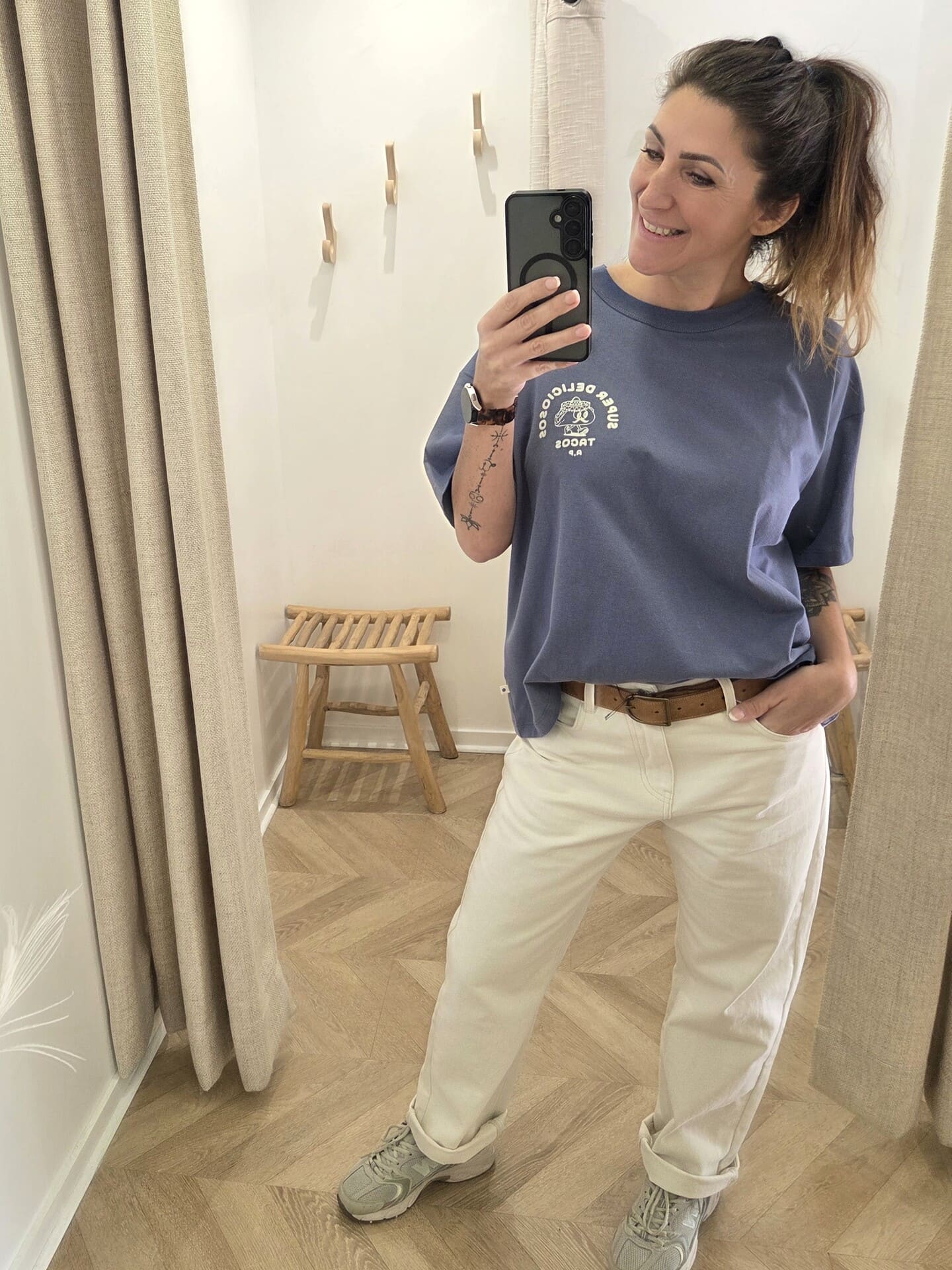 - Taille : XS, S, M, L – coupe oversize (je porte une taille S sur les photos)