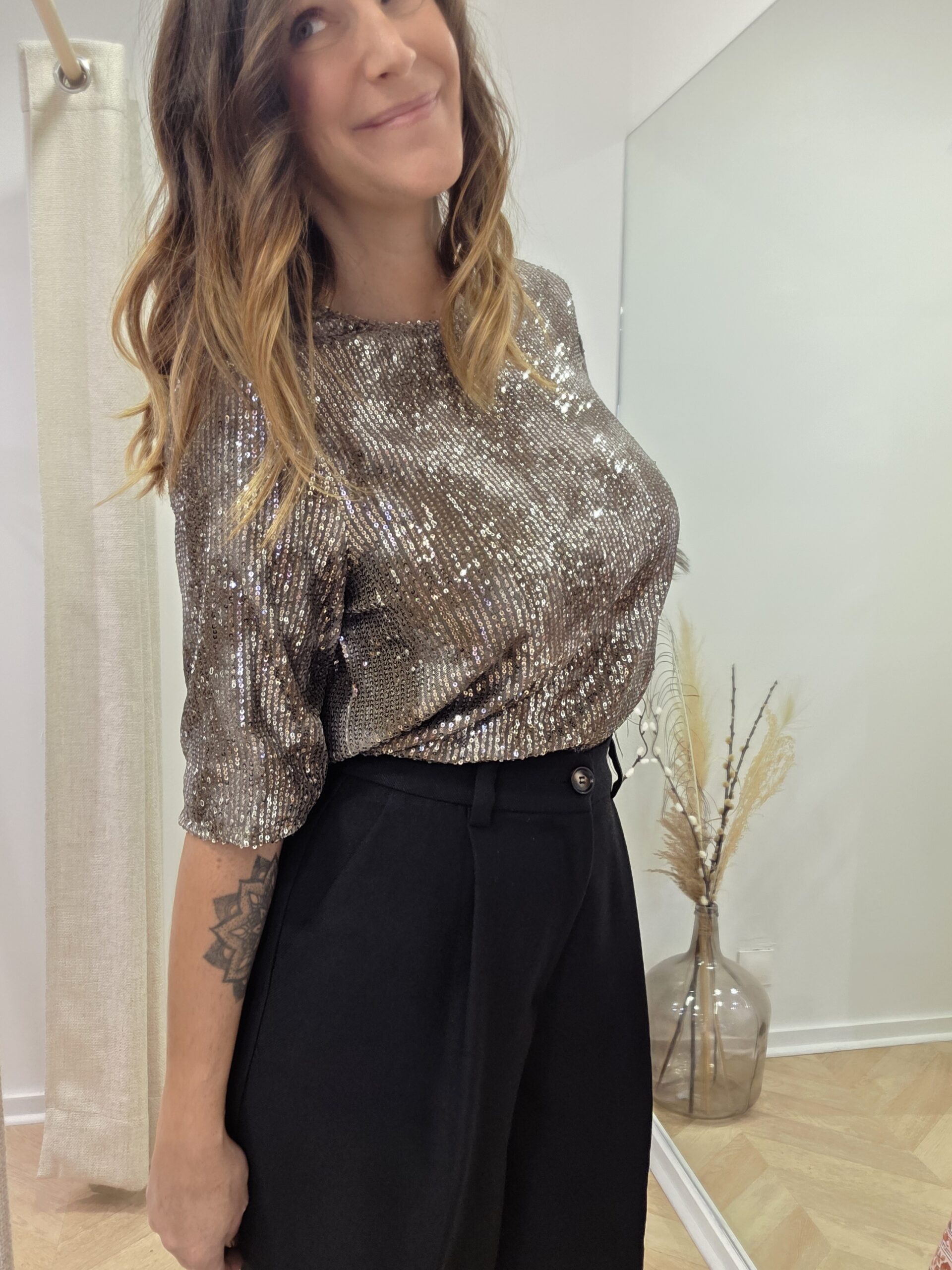 Un top festif, lumineux et facile à assortir, qui fait tout de suite son effet